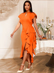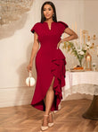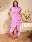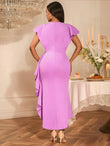 V Neck flutter sleeve asymmetric Ruffled Mermaid Bodycon Dress.