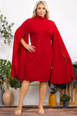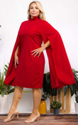 Midi dress designed to show off your silhouette. This dress has a Bodycon fit, high Neckline, and a below the knee hemline, with cape sleeves.