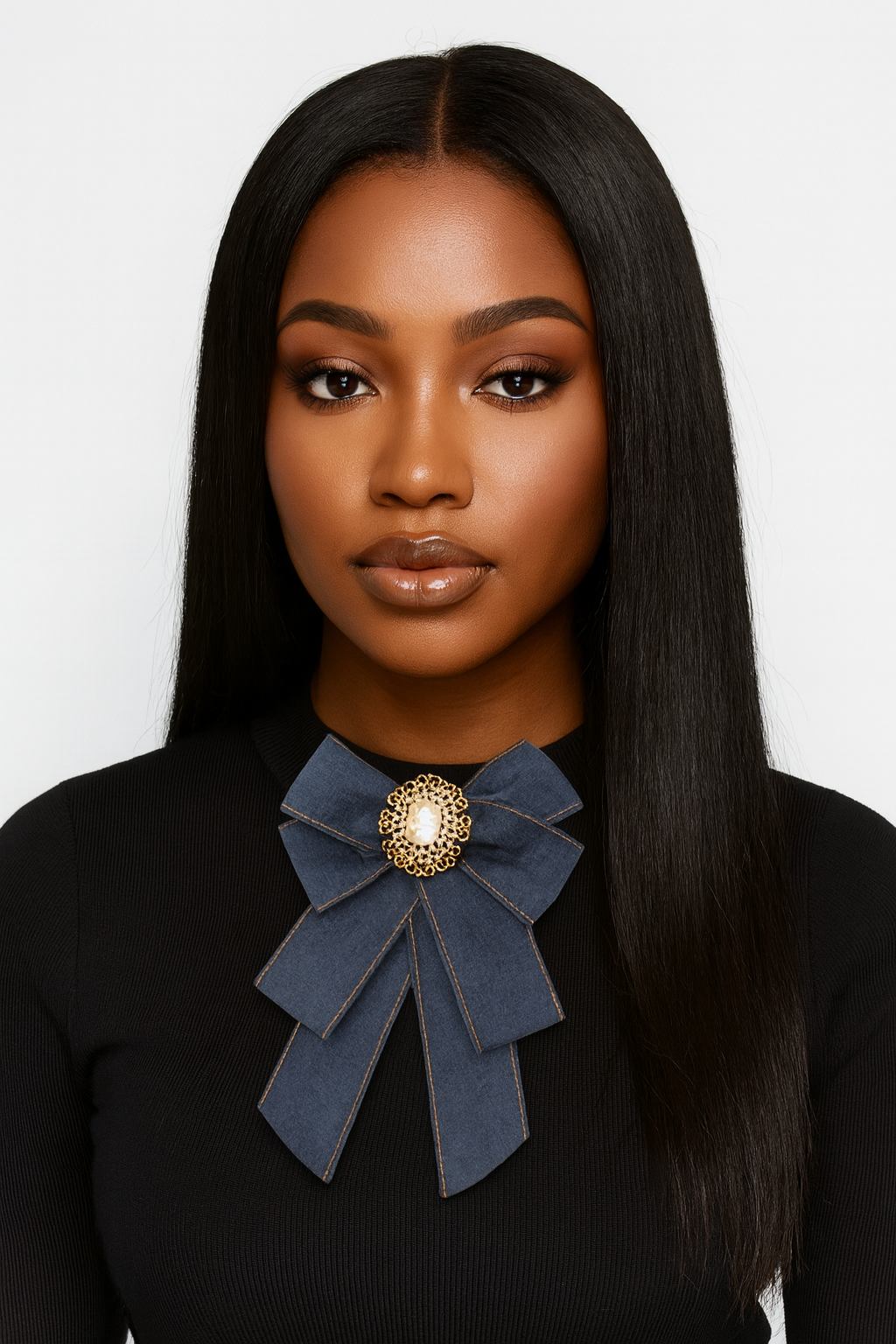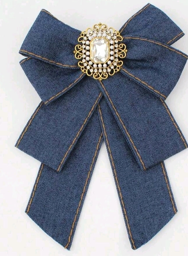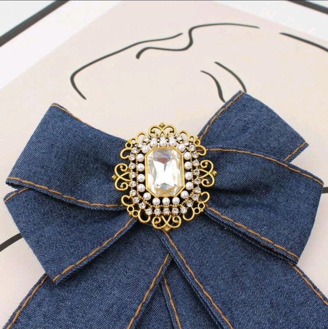 Pearl Studded Denim Brooch