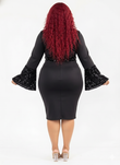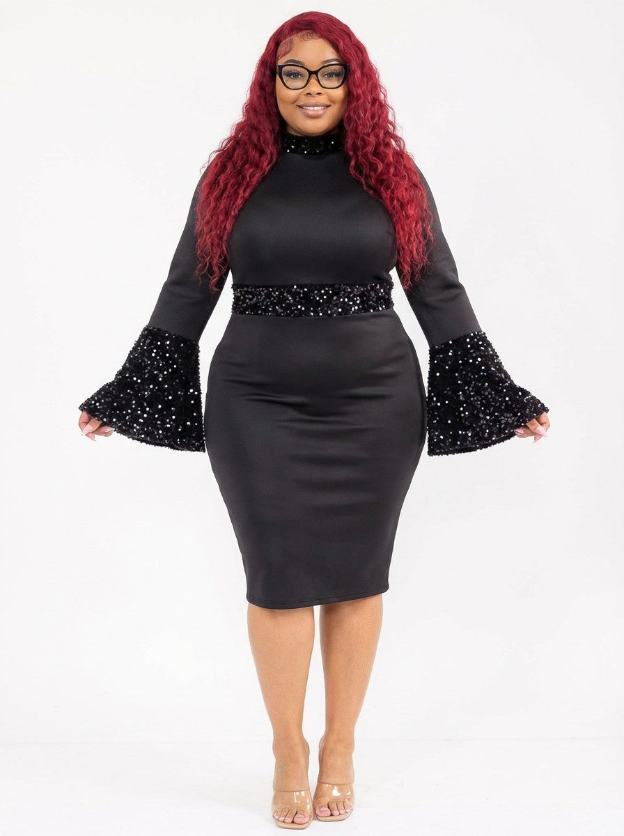 SUPER TECHNO SEQUENCE BOW SHOULDER COMBO DRESS PLUS SIZE